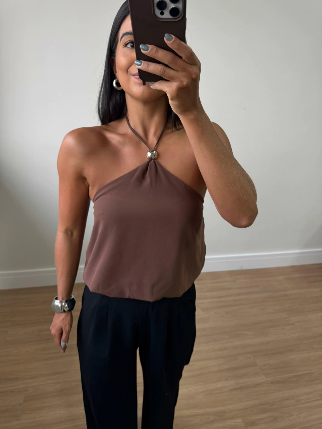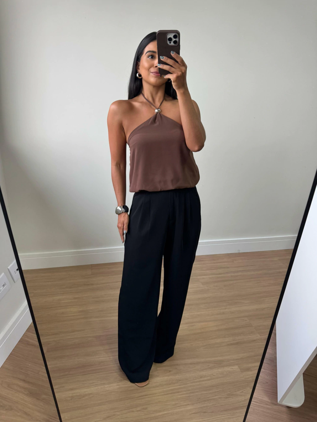 Blusa Frente única Chiffon Estela Marrom