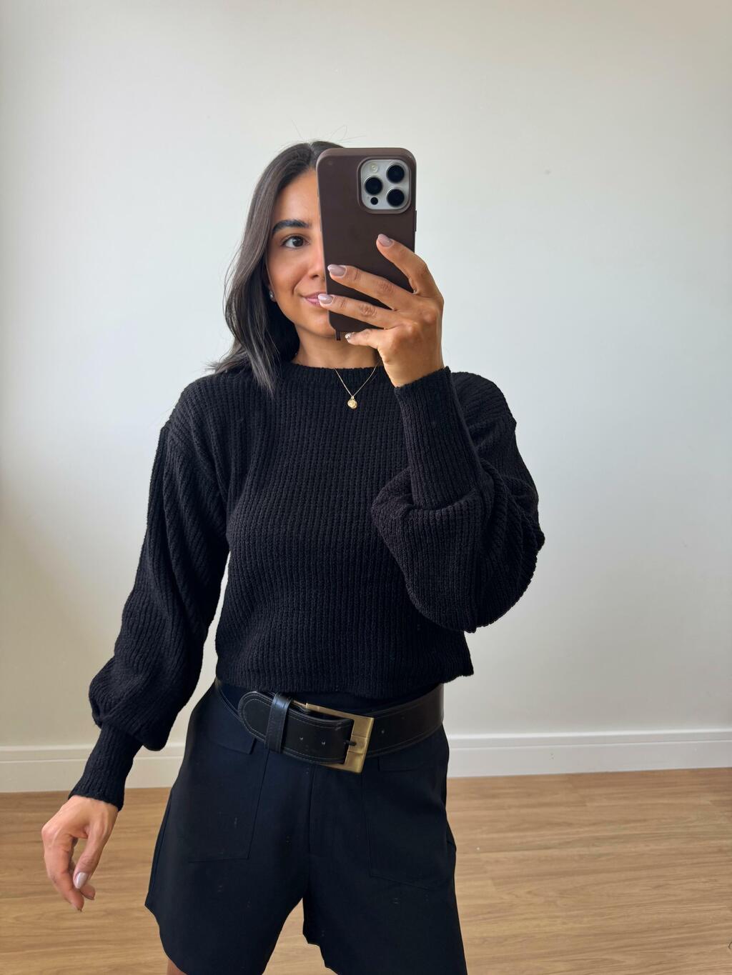 A Blusa Tricot com Mangas Preto é a escolha perfeita para quem busca unir conforto e sofisticação em uma única peça. Com um toque macio e um caimento impecável, essa blusa é ideal para compor seus looks do dia a dia com um toque de estilo atemporal.